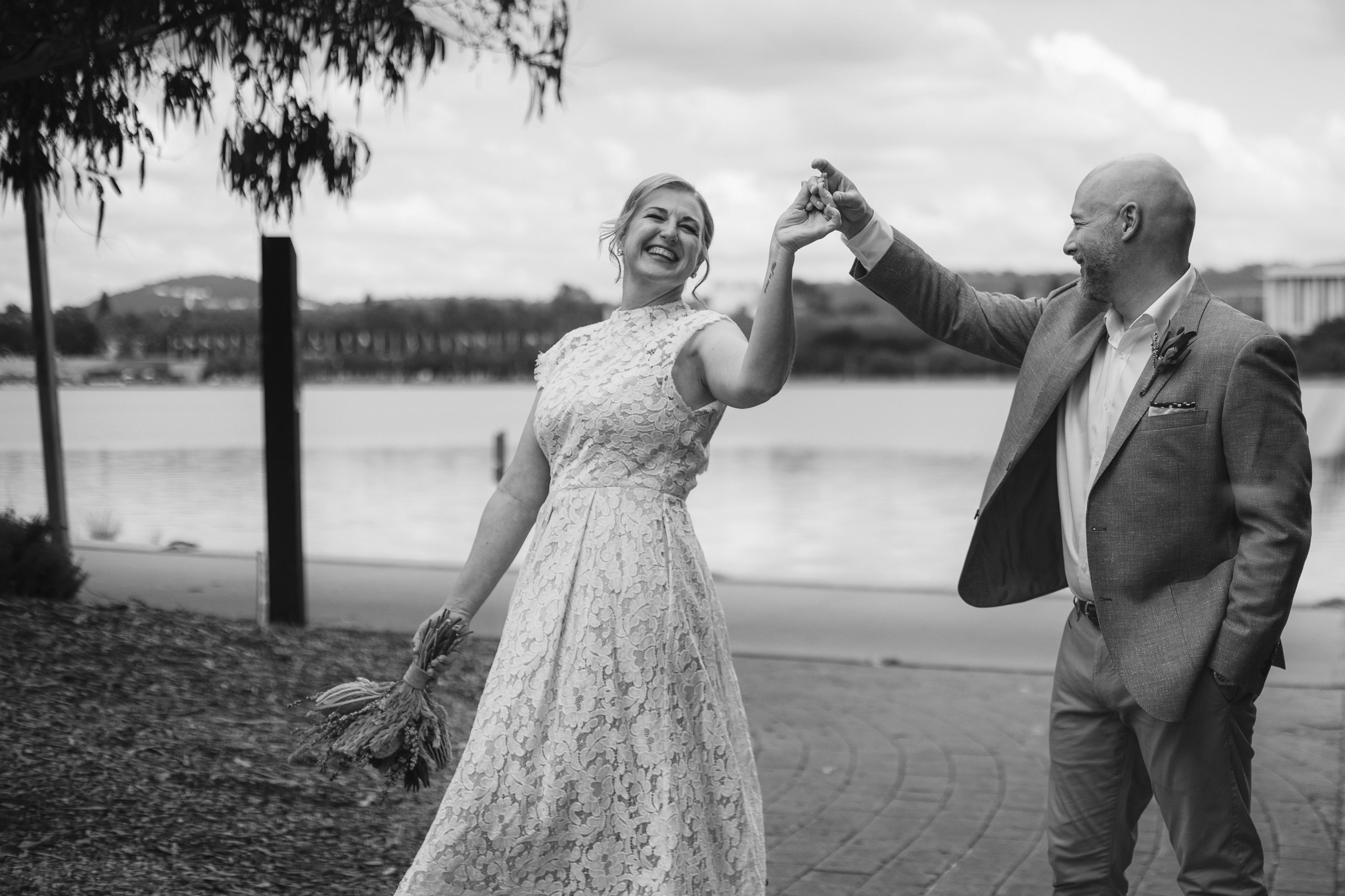 These two said I Do by the shore of Lake burley Griffin, with just their immediate family, and closest friends present. They chose a spot full of beautiful trees, with National Library Canberra in the background, and lots of room for a game of cricket after.